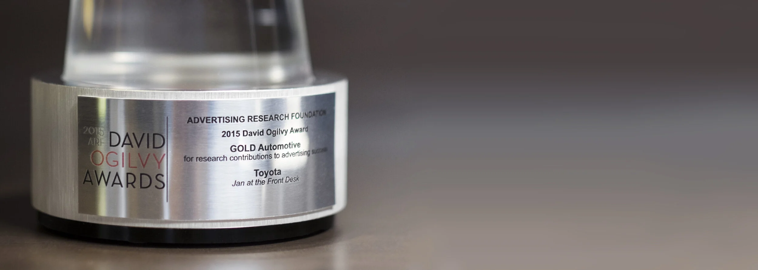 Hypothesis, the premier creative and consumer insights agency, is excited to congratulate client-partners Toyota and Saatchi & Saatchi LA on winning a 2015 Ogilvy Award for the national “Jan at the Front Desk” Toyota sales event campaign (“Automotive/Turnaround” category).